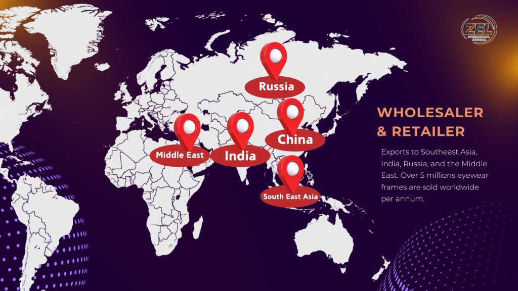 ZEL Eyewear has established a strong global presence, with key markets in China, India, Russia and Taiwan, and is expanding its reach across Southeast Asia and the Middle East. We reliably distribute over 5 million frames annually worldwide, demonstrating our extensive production capability and trusted market position.